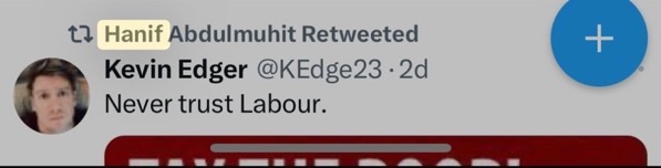 The question worth asking is not why Abdulmuhit wants back in. Political calculation is a constant in Newham, and the motivations of someone who has navigated this many different party loyalties are presumably pragmatic. The real question is why Labour would want him close to its campaign — and, more pointedly, why it would welcome back someone whose loudest recent contribution to Newham politics was cheering on the very candidate Labour is now trying to beat. And who retweeted this kind of thing: